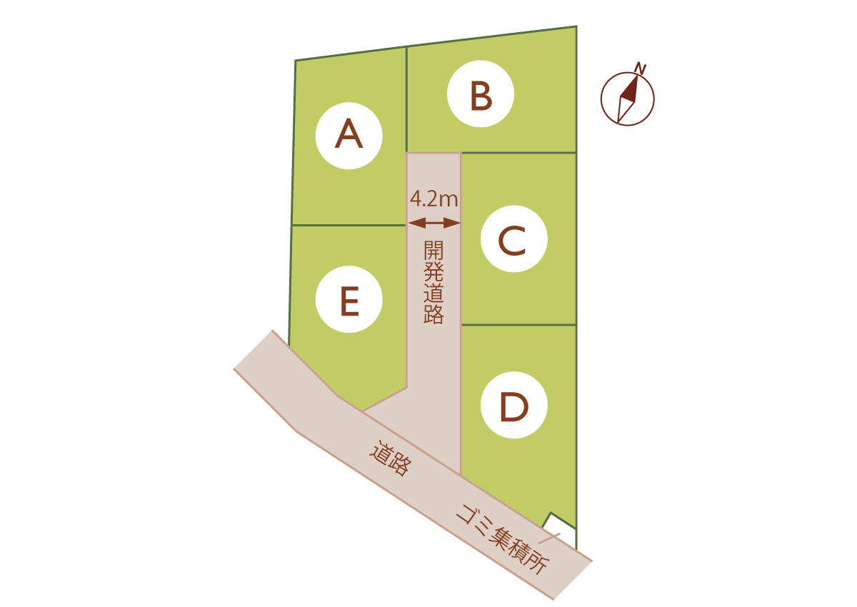 5区画 D号棟:二方(西 公道 4.2m)(南 公道 4.0m) ※物件概要の詳細は各物件のページをご参照ください |